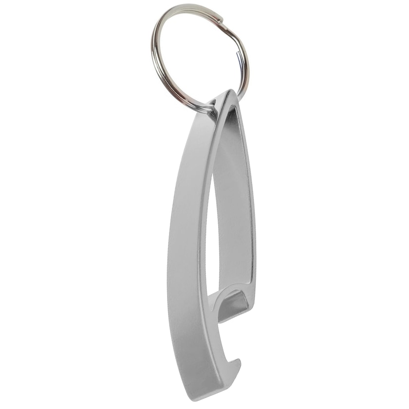 Pehmeästi muotoiltu avaimenperä, joka toimii pullonavaajana.