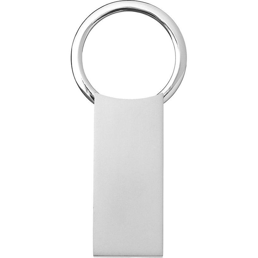 Tyylikäs metallinen avaimenperä, iso tila kaiverrukselle.