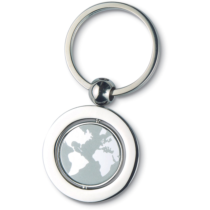 Elegantti, maailmankartalla koristeltu avaimenperä metallista. Avaimenperä toimitetaan mustassa lahjarasiassa.