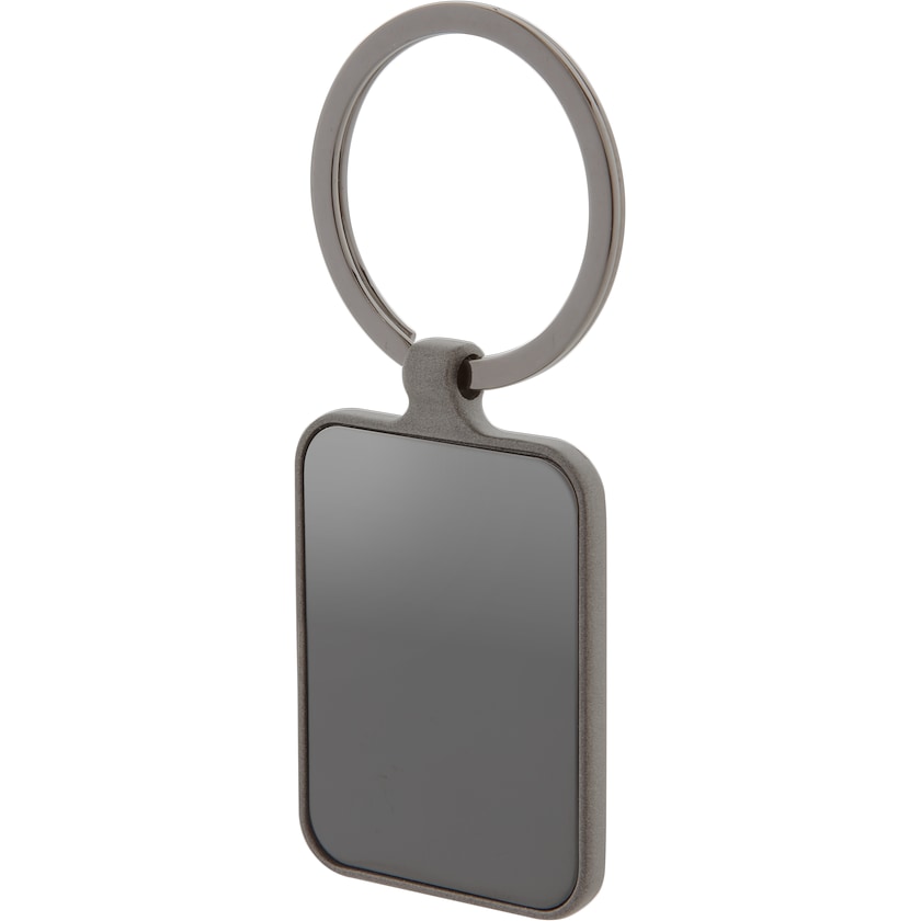 Suorakaiteen muotoinen metallinen avaimenperä, jossa gun metal -viimeistely. Molemmat levyt ovat kiiltäviä, muuten avaimenperä on matta. Toimitetaan mustassa lahjarasiassa.