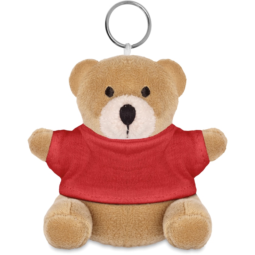 Nallekarhu avaimenperässä. Painatus tehdään nallen puseroon. Suloiselle karhulle voi valita punaisen, sinisen tai valkoisen paidan.