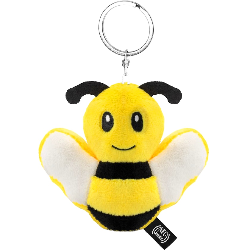 Ystävällinen mehiläinen avaimenperällä. Sting on valmistettu kierrätetyistä PET-pulloista (rPET). Etiketti on varustettu NFC-sirulla, joka voi kommunikoida mobiililaitteiden kanssa NFC-teknologian avulla. Esimerkiksi linkki nettisivuille voidaan viestittää NFC-sirulla kännykkään.