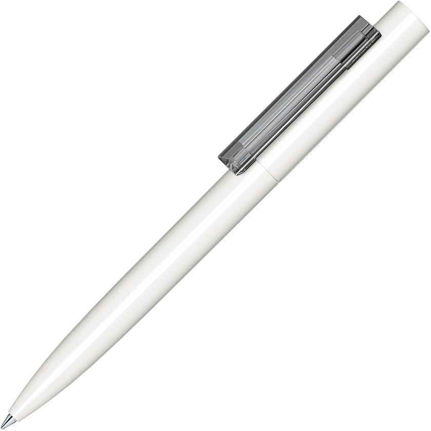 Kiiltävä valkoinen mainoskynä läpinäkyvällä klipsillä. Modernisti muotoiltu mustekynä laatuvalmistajalta Senator®. Valittavana musta tai sininen mustepatruuna.