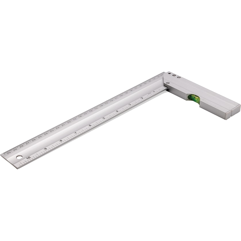 Suorakulma vatupassilla. Beckemeyer on valmistettu alumiinista ja sen tarkkuus on 0,5 mm. Yksi puoli on 30 cm ja toinen puoli 10 tuumaa. Tarkoitettu ammattikäyttöön.