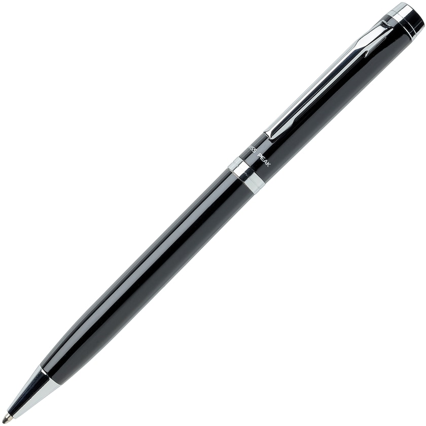 Ensiluokkainen metallikynä Swiss Peakilta. Sisältää saksalaisen mustepatruunan, jolla voi kirjoittaa jopa 1200 metriä tekstiä. Toimitetaan tyylikkäässä pahvikuoressa.