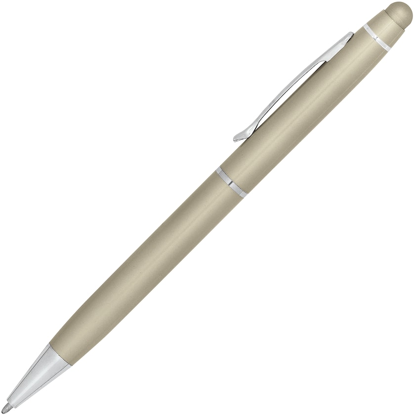 Elegantti metallinen kosketusnäyttökynä. Kynässä on sininen muste, ja kynän rungon väriin sopiva kosketusnäyttöpää. Merkkausvaihtoehtoina joko painatus tai laserkaiverrus.