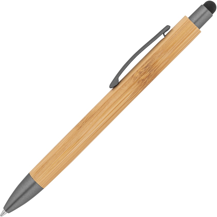 Kosketuskynä bambusta. Kynässä on musta muste. Kaunis kynä, joka näyttää kalliimmalta kuin se todellisuudessa on.