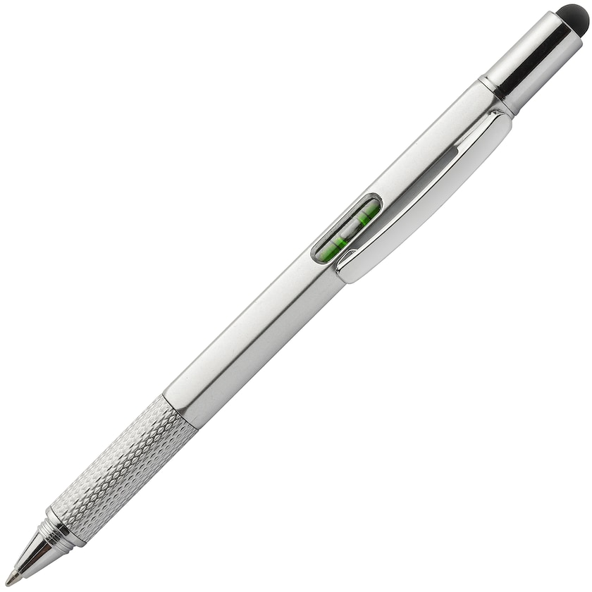 Kosketusnäyttökynä usealla fiksulla toiminnolla. Kynäosassa on vatupassi ja viivain senteillä ja tuumilla. Kynän sisällä on kaksi ruuvimeisselipäätä. Huippukynä tee-se-itse-ihmisille!