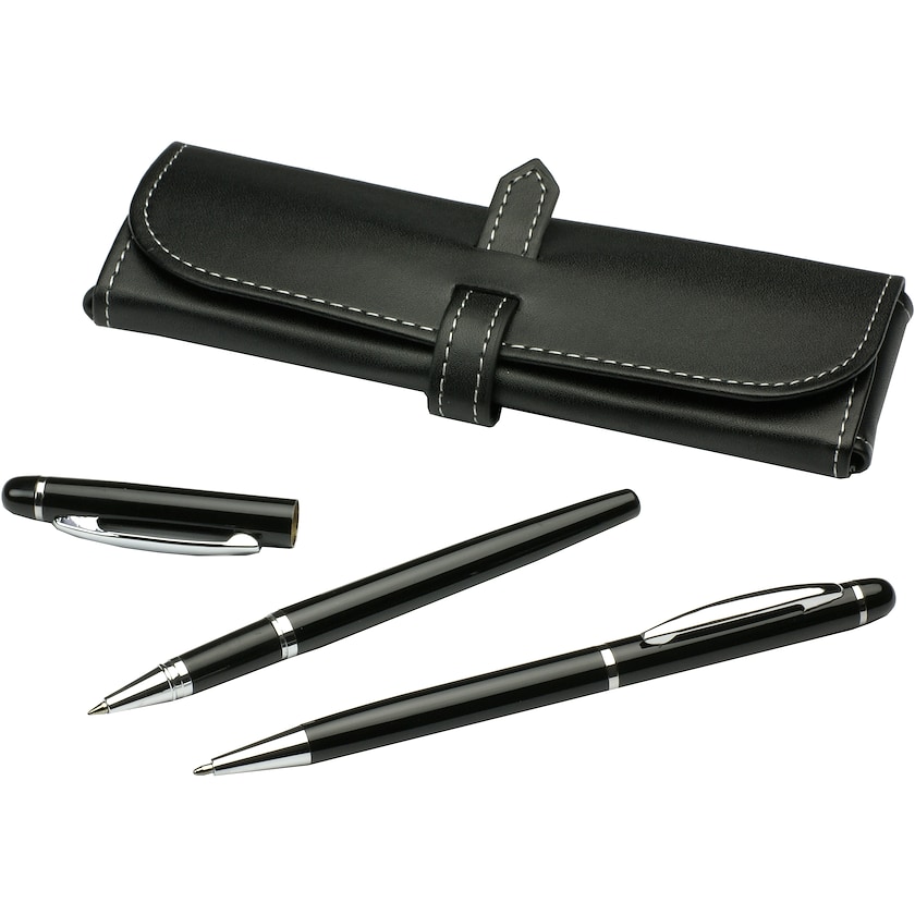 Uniikki kynäsetti hienossa tekonahkakotelossa. Setissä on mustekynä ja kuulakärkikynä metallista. Kyniin tehdään merkkaus laserkaiverruksella ja lahjarasiaan voidaan tehdä painatus. Kaiverrushinta tarkoittaa kaiverrusta yhteen kynään.