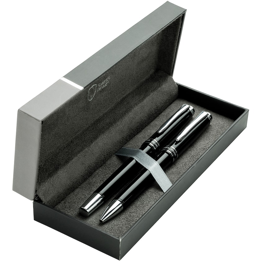 Näyttävä setti, joka sisältää kuulakärkikynän ja rollerball-kynän. Kynissä on saksalainen mustepatruuna, jolla voi kirjoittaa jopa 1200 metriä tekstiä. Toimitetaan ylellisessä lahjarasiassa. Painohinta koskee yhden kynän painatusta.