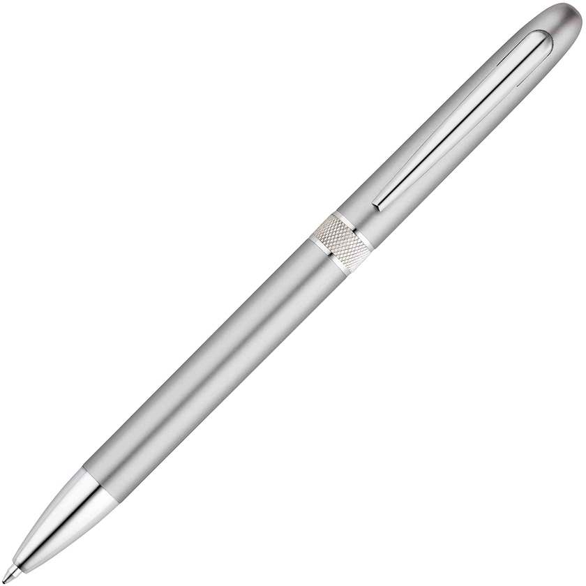 Pehmeästi muotoiltu kynä kromatuilla yksityiskohdilla. Kynässä on metallinen klipsi ja sininen muste.