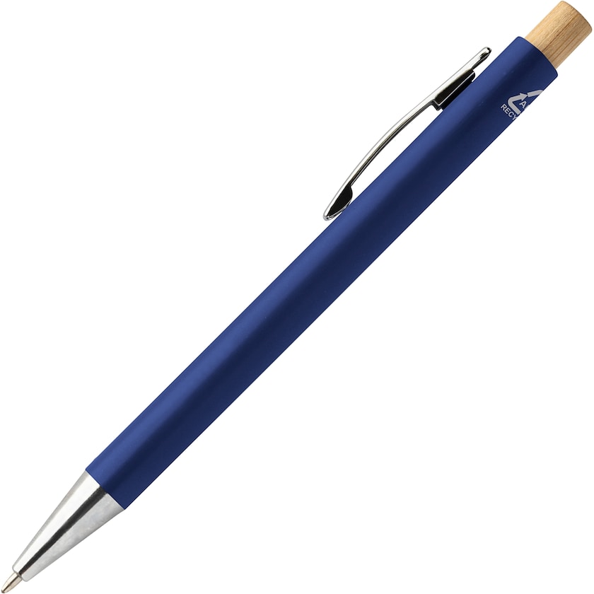 Kynä kierrätetystä ABS:stä ja bambusta. Kynän kärki ja pidike ovat valmistettu metallista.
