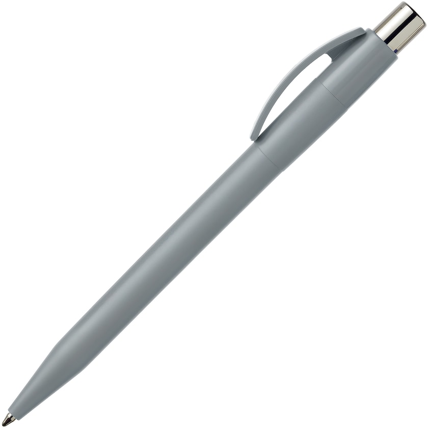 Mainoskynä mattaväreissä. Kynässä on metallinvärinen painonappi ja suuri painoala.