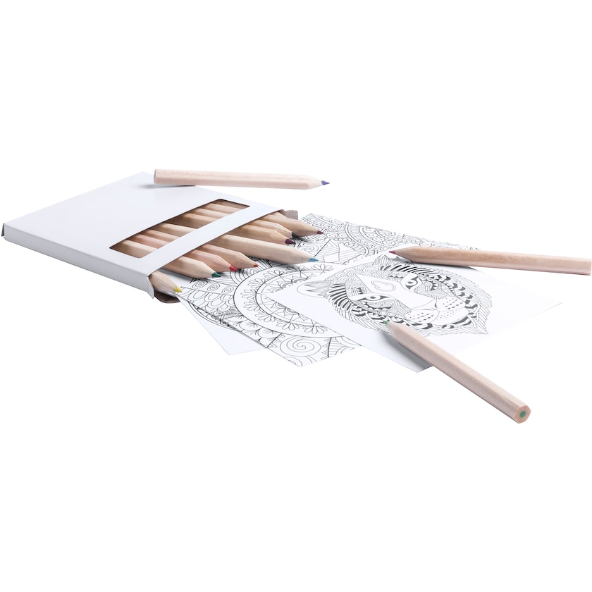 12 värikynän ja 12 värityssivun setti. Tämä tuote antaa iloa sekä nuorille että vanhoille! Värittäminen rentouttaa, ja antaa mahdollisuuden päästää luovuuden valloilleen. Painatus tehdään pahvipakkaukseen (maks. 2-väripainatus).