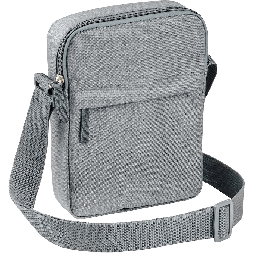 Pieni urbaani unisex-olkalaukku. Saatavana sinisenä tai harmaana. Säädettävä olkahihna, edessä vetoketjullinen sivutasku. Sopivan kokoinen ja tyyliltään miellyttävän hillitty citylaukku, johon mahdutat kaikki tarpeellisimmat tavarat älypuhelimesta ja pienestä tabletista aina passiin ja hammasharjaan. Painatus 1-4:llä värillä, valitse haluamasi sävyt laajalta Pantone-kartalta.