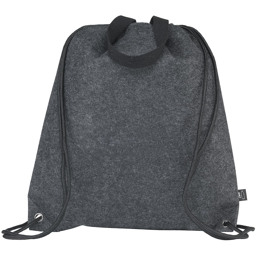Ympäristöystävällinen jumppapussi huovasta. Kangas on valmistettu kierrätetyistä PET-pulloista sekä kierrätystekstiileistä. Jumppapussia voi kantaa selässä tai kädessä.