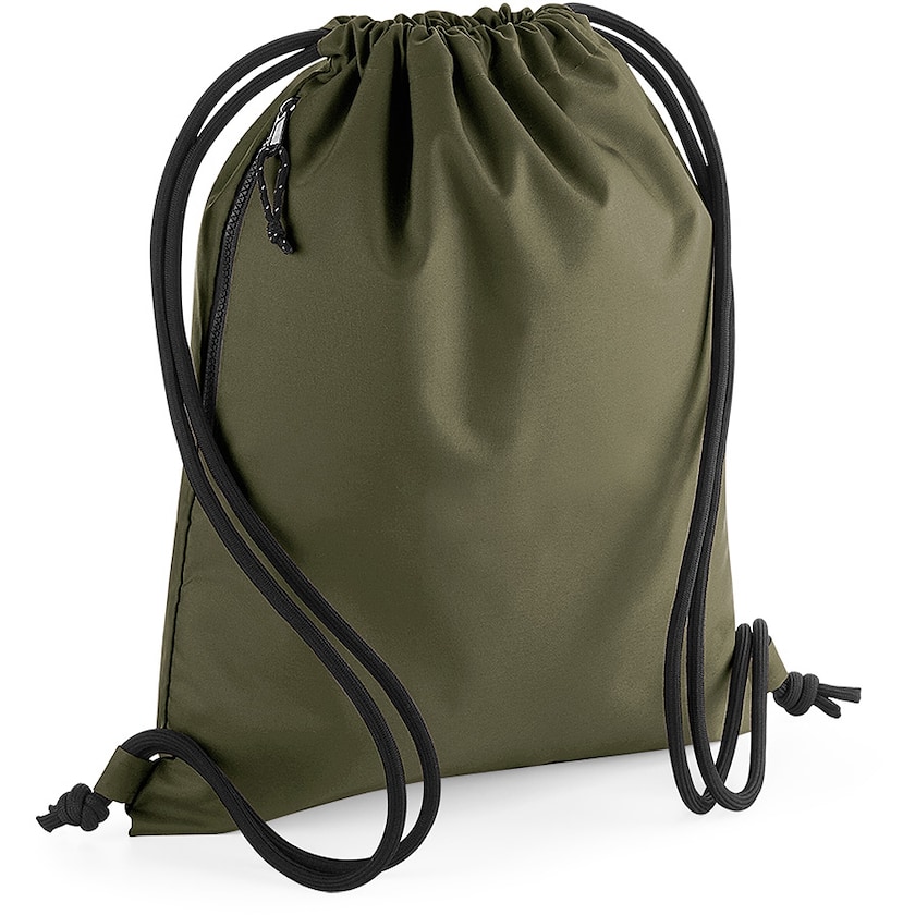 Ympäristöystävällinen jumppapussi kierrätyspolyesteristä. Pussin sivussa on pieni tasku arvoesineille. Loistovalinta, jos etsit ympäristöystävällistä mainoskassia!