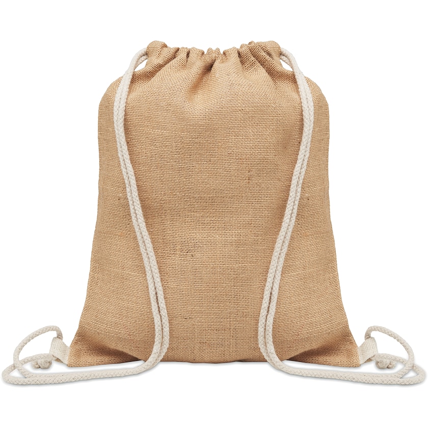 Kaunis jumppapussi juutista. Valitse valkoiset tai mustat puuvillanauhat.