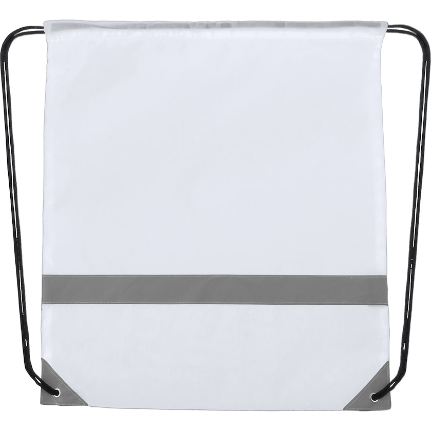 Jumppapussi, jossa edessä heijastinnauha. Viisi värivaihtoehtoa. 1-4-värinen painatus. Tämä jumppapussi suojaa selustaasi, kun matkaat illalla treeneistä kotiin pimeässä.