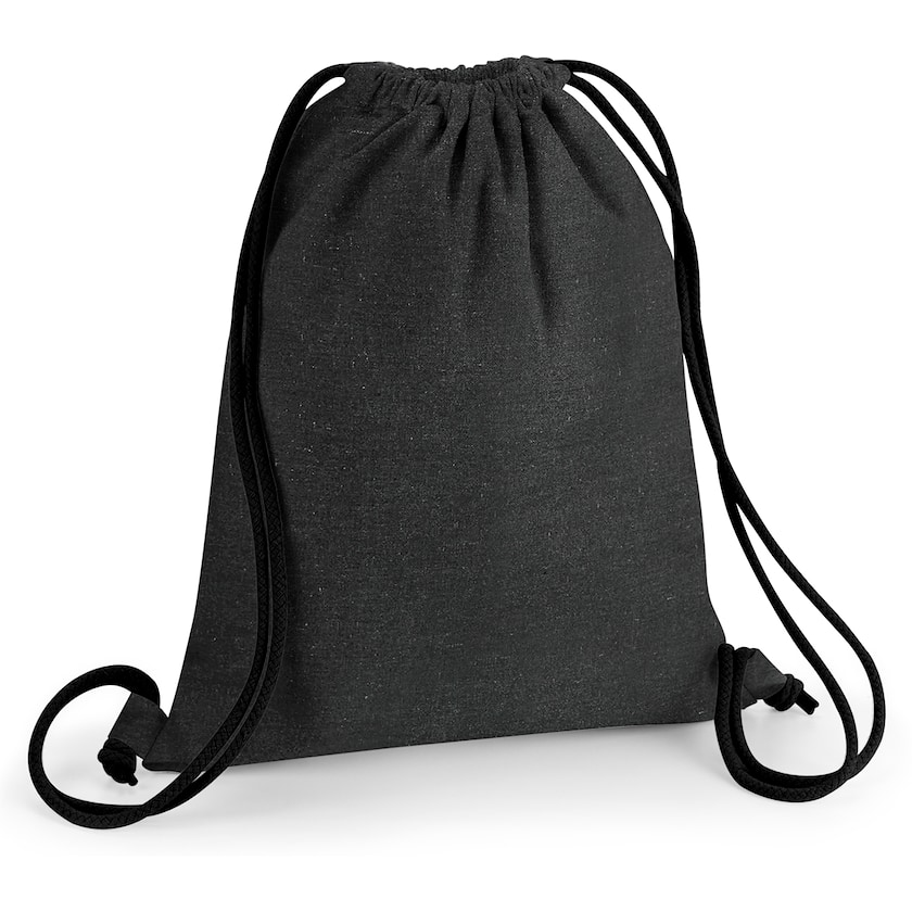 Ympäristöystävällinen jumppapussi kierrätysmateriaalista. Kangas ja pussin narut on tehty kierrätyspuuvillasta ja kierrätyspolyesteristä. Hyvä valinta, jos haluat ostaa ympäristöystävälliset jumppapussit painatuksella yrityksellesi!