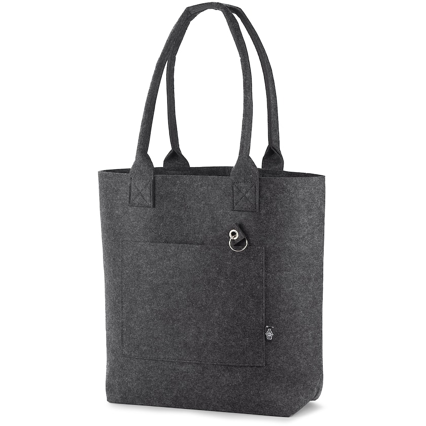 Ylellinen huopakassi ympäristöystävällisestä materiaalista. Banksissa on pitkät olkaimet ja edessä pieni säilytystasku. Mukana tulee samasta huopamateriaalista valmistettu avainrengas.