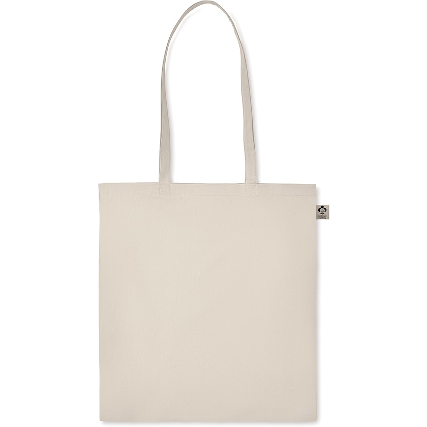 140 gramman luomupuuvillasta valmistettu puuvillakassi. Pitkäkahvaisella puuvillakassilla on myös OEKO-TEX -sertifikaatti.