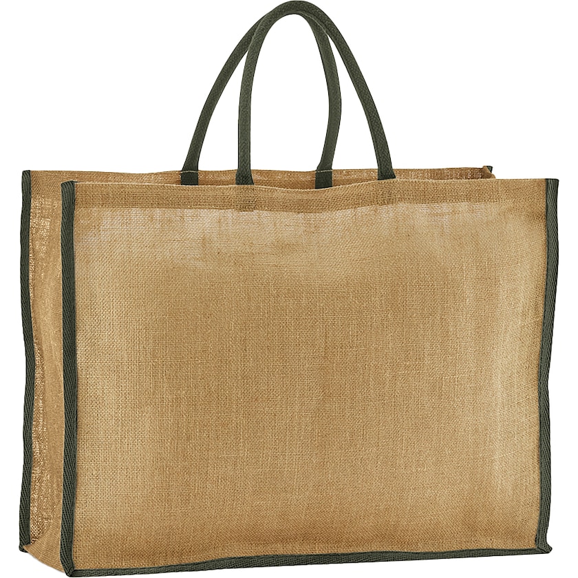 Iso juuttilaukku lyhyillä puuvillakahvoilla. Juuttikangas on laminoimaton, mikä antaa kassille luonnollisen ja erittäin kauniin ulkonäön.