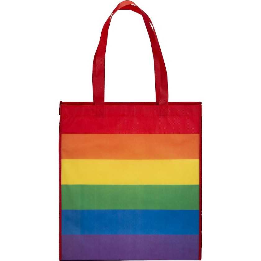Ympäristöystävällinen sateenkaarenvärinen laukku leveällä pohjalla. Dorian on valmistettu rPET:stä eli kierrätetyistä PET-pulloista. Vain 1-väripainatus on mahdollinen.