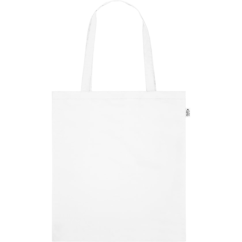 Ostoskassi 100% rPET-kankaasta. Kassissa on 55 cm pitkät kahvat. rPET on ympäristöystävällinen materiaali, joka tuotetaan kierrätysmuovista.