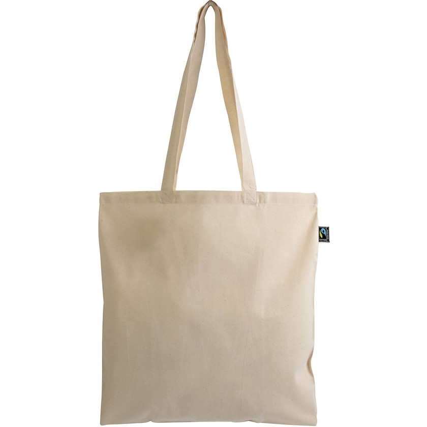 140 gramman kangaskassi Reilu Kauppa -sertifioidusta puuvillasta. Kassissa on pitkät kahvat ja leveä pohja. Sivussa kangasmerkki, joka osoittaa kankaan olevan Reilu Kauppa -sertifioitua.