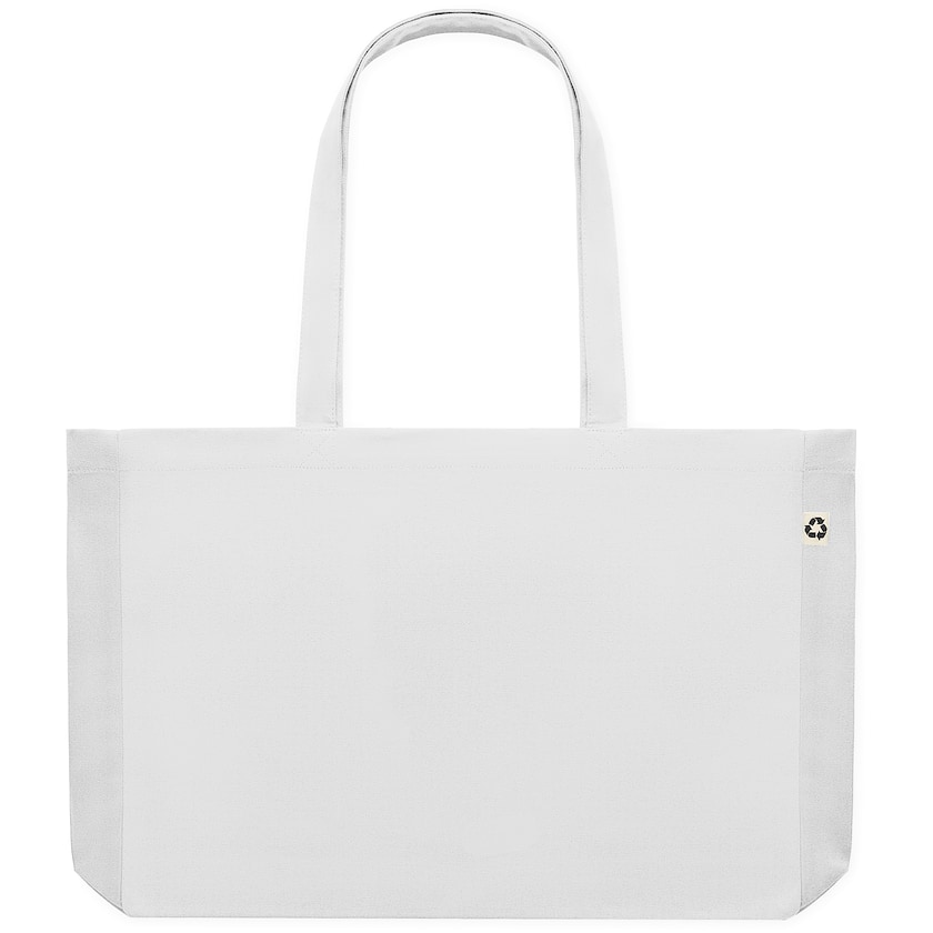 Ympäristöystävällinen kassi kierrätetystä puuvillasta. Somero-kassissa on pitkät kahvat ja 9 cm leveä pohja. Jämäkkä kassi on valmistettu 280 gramman sekoitekankaasta, joka on 50% kierrätyspuuvillaa ja 50% tavallista puuvillaa.