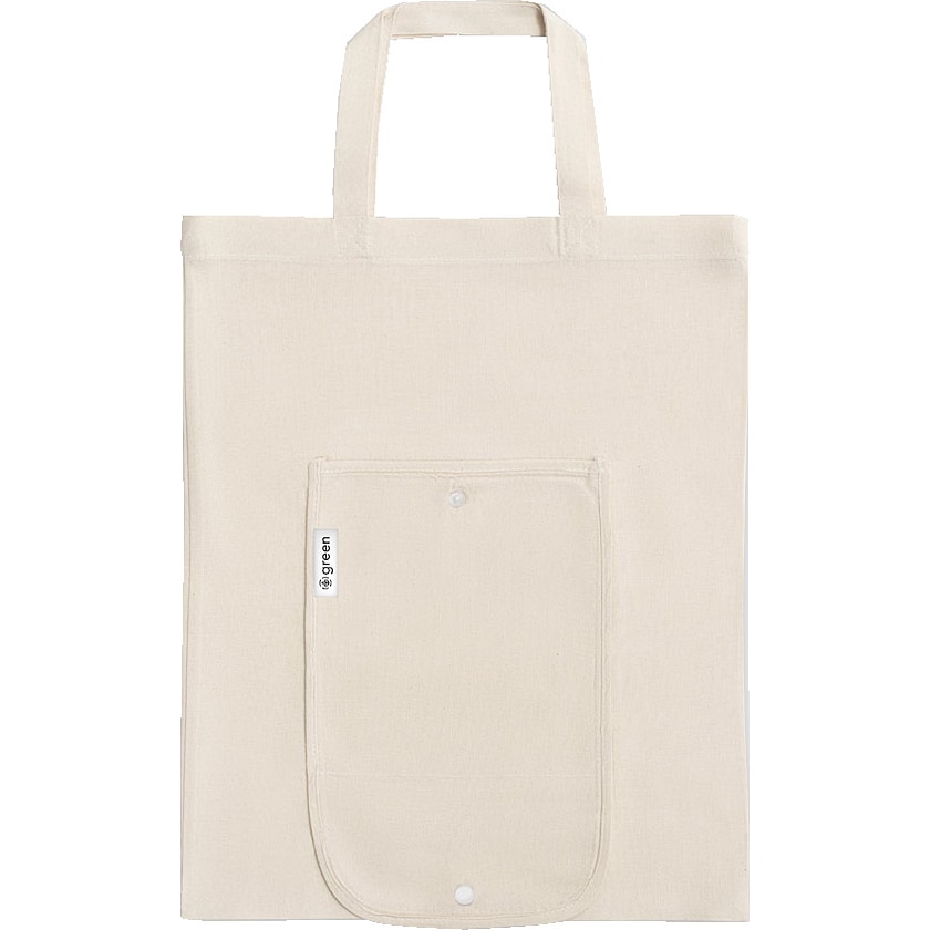 Kokoontaitettava kierrätysmateriaalista valmistettu puuvillakassi. Kangas on valmistettu 50 % kierrätetystä puuvillasta ja 50 % tavallisesta puuvillasta. Olkaimet ovat 38 cm pitkät.