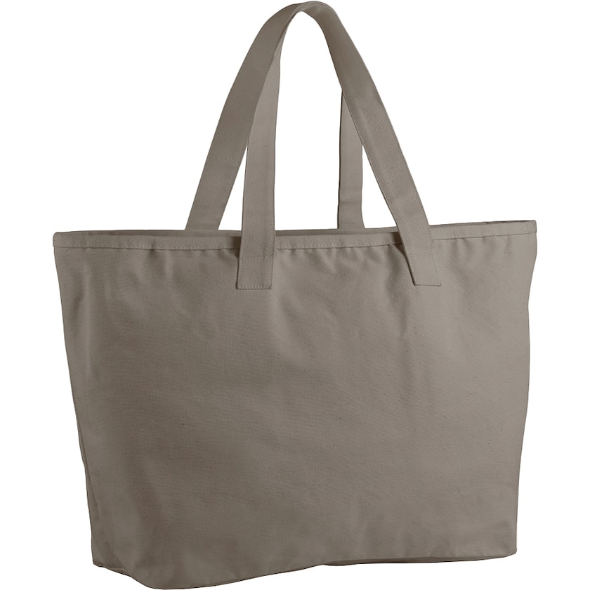 Iso laukku vahvasta 475 gramman puuvillakankaasta. Päälokero on varustettu vetoketjulla. Sisällä kaksi pienempää taskua. Voidaan kantaa sekä olkapäällä että kädessä.