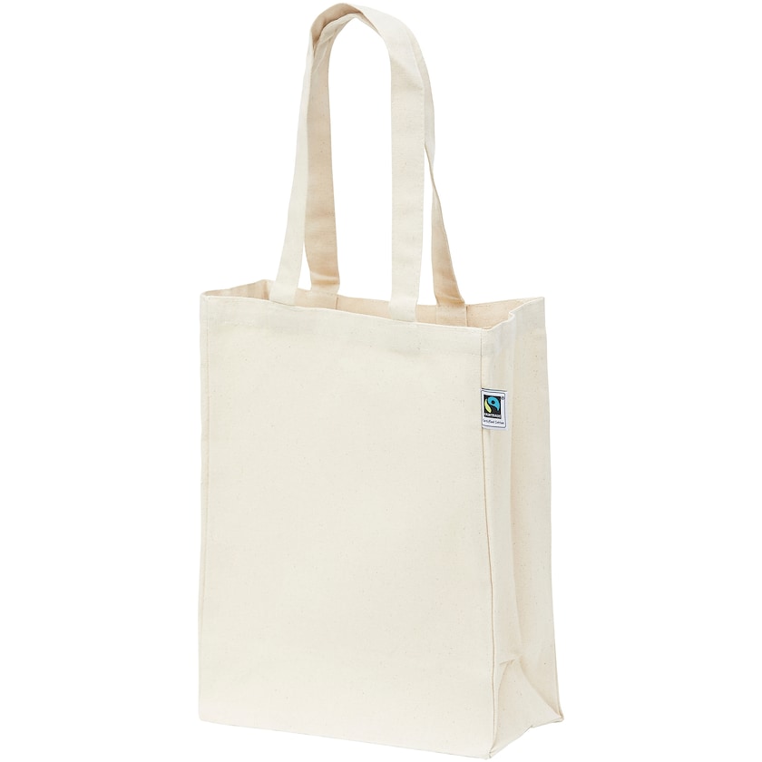 Reilu Kauppa -sertifioitu kangaskassi vahvaa 310 gramman puuvillaa. Kassi on hyvin tilava leveän pohjansa ansiosta. Ulkopuolelle on ommeltu Reilun Kaupan Fairtrade-etiketti. 100% Reilun Kaupan puuvillaa, 60 cm pitkät kantokahvat.