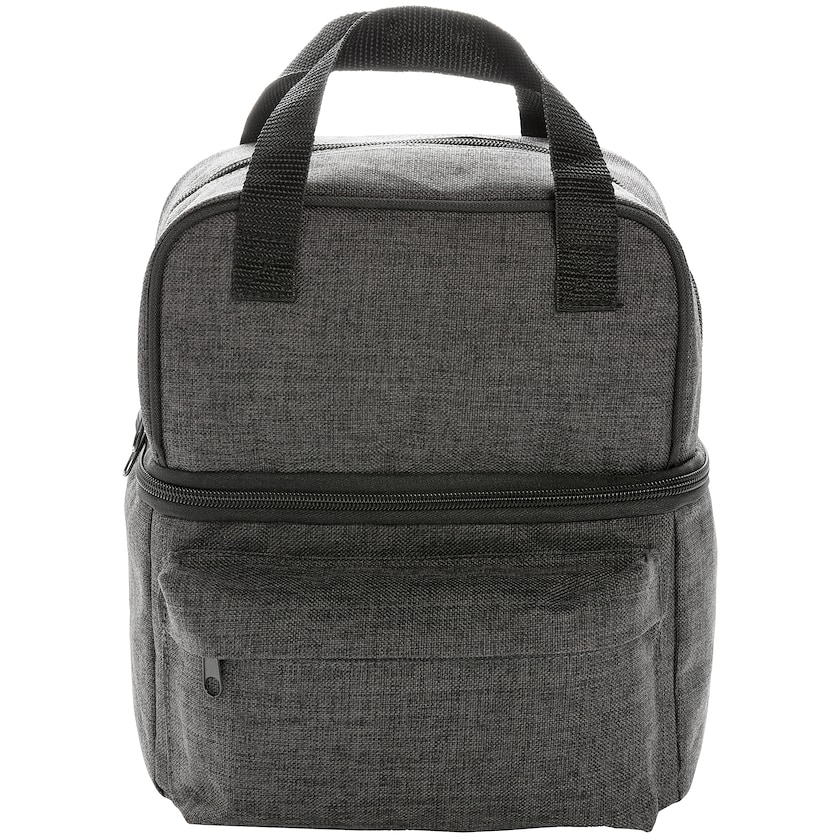 Tilava kaksiosainen kylmälaukku. Alempi lokero on tarkoitettu juomatölkeille ja kassin yläosaan voi laittaa ruokatavarat. Alaosaan mahtuu 6 tölkkiä. Kassin etupuolella on erillinen vetoketjutasku.