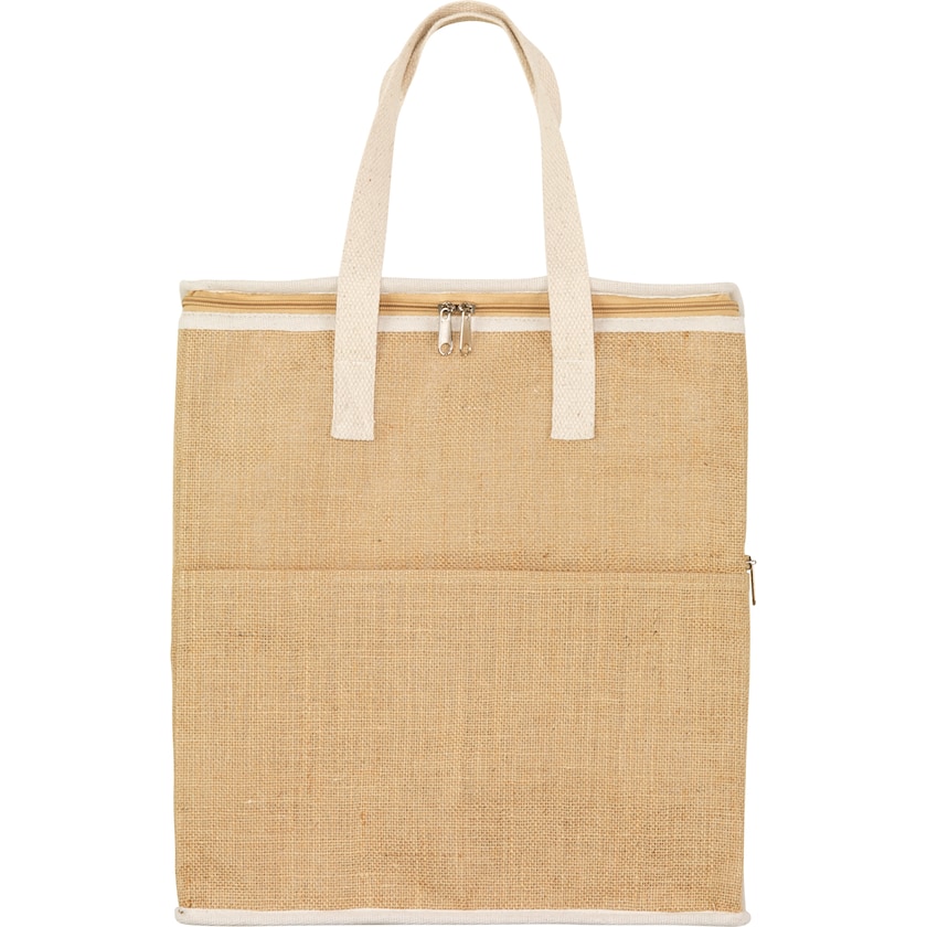 Suuri kylmälaukku juutista ja puuvillasta. Edessä pieni lisätasku. Kylmälaukun tilavuus on 24 litraa. Vain 1-väripainatus.