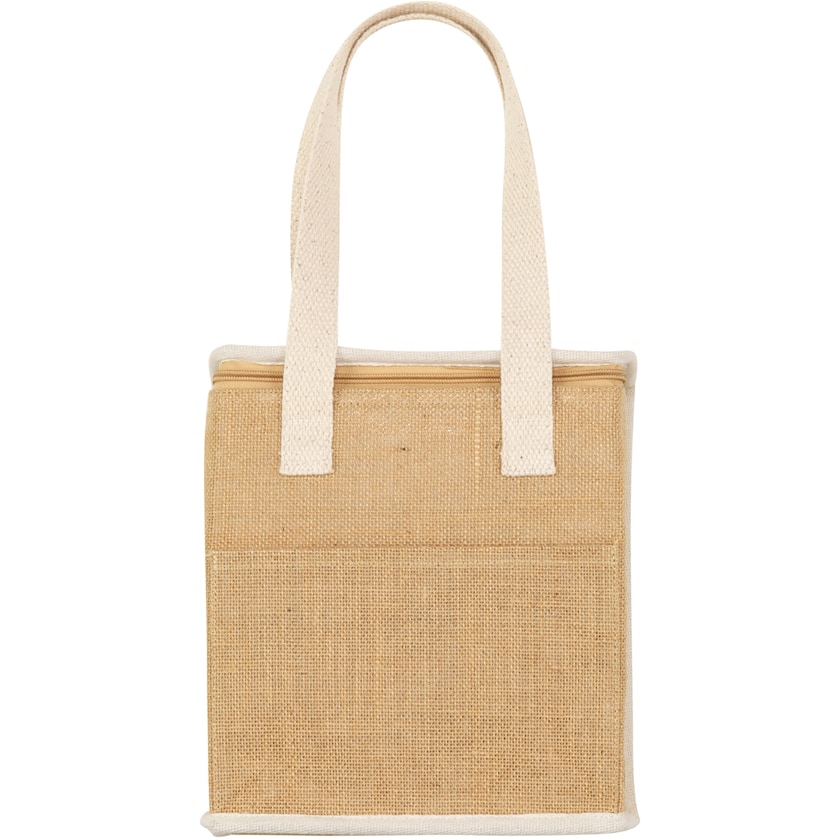 Kylmälaukku, jonka materiaaleina ovat juutti- ja puuvillakangas. 8 litran kylmälaukussa on pieni etutasku. Merkkaus vain 1-väripainatuksena.