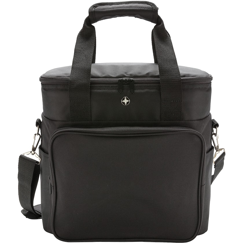 Swiss Peakin ainutlaatuinen kylmälaukku painatuksella. Suureen eristettyyn laukkuun mahtuu 20 kappaletta 33 cl tölkkejä. Irroitettava ja säädettävä kantohihna.