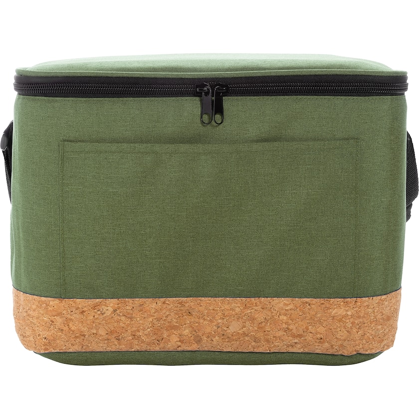 Ekologinen kylmälaukku, jokna koristeena on korkkikangasta. Laukkuun mahtu 12 juomatölkkiä. Kassin kangas on 50% rPETiä, eli valmistettu kierrätetyistä muovipulloista.
