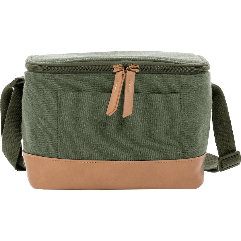 Pieni kylmälaukku ympäristöystävällisistä materiaaleista. Laukun etupuolella on pieni lisätasku. Laukkuun mahtuu kuusi juomatölkkiä. Materiaalina 40% kierrätyspolyesteri ja 60% kierrätyspuuvilla.