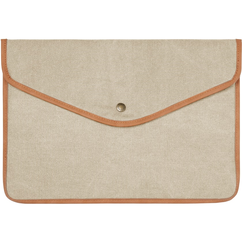 Läppärikotelo kierrätetystä puuvillakankaasta ja keinonahasta. Topattu antamaan lisäsuojaa läppärille. Sopii useimmille enintään 16 tuuman kannettaville tietokoneille.