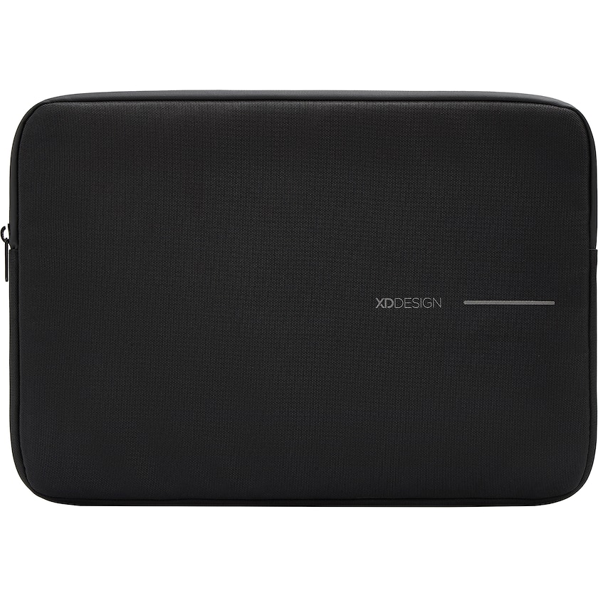 XD Designin läppärikotelo 16 tuuman kannettavalle tietokoneelle. Kannettavan tietokoneen kotelo on valmistettu rPET:stä eli kierrätetystä PET:stä. Kangas on vettähylkivä ja vetoketju vedenpitävä. Sisävuori on valmistettu pehmeästä fleecestä.