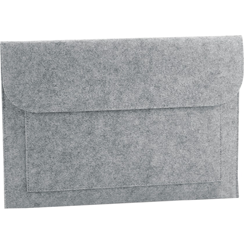Trendikäs tietokonekotelo huopakankaasta. Kotelossa on tarrakiinnitys ja edessä pieni tasku. Erittäin tyylikäs läppärikotelo, joka on kustomoitavissa logopainatuksella. Merkkauksen saa vain 1-väripainatuksena.