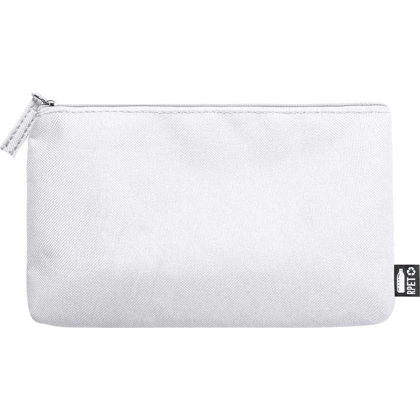 Ympäristöystävällinen meikkilaukku rPET-materiaalista. Laukussa on vetoketju. Ekologinen materiaali on valmistettu kierrätetyistä PET-muovipulloista.