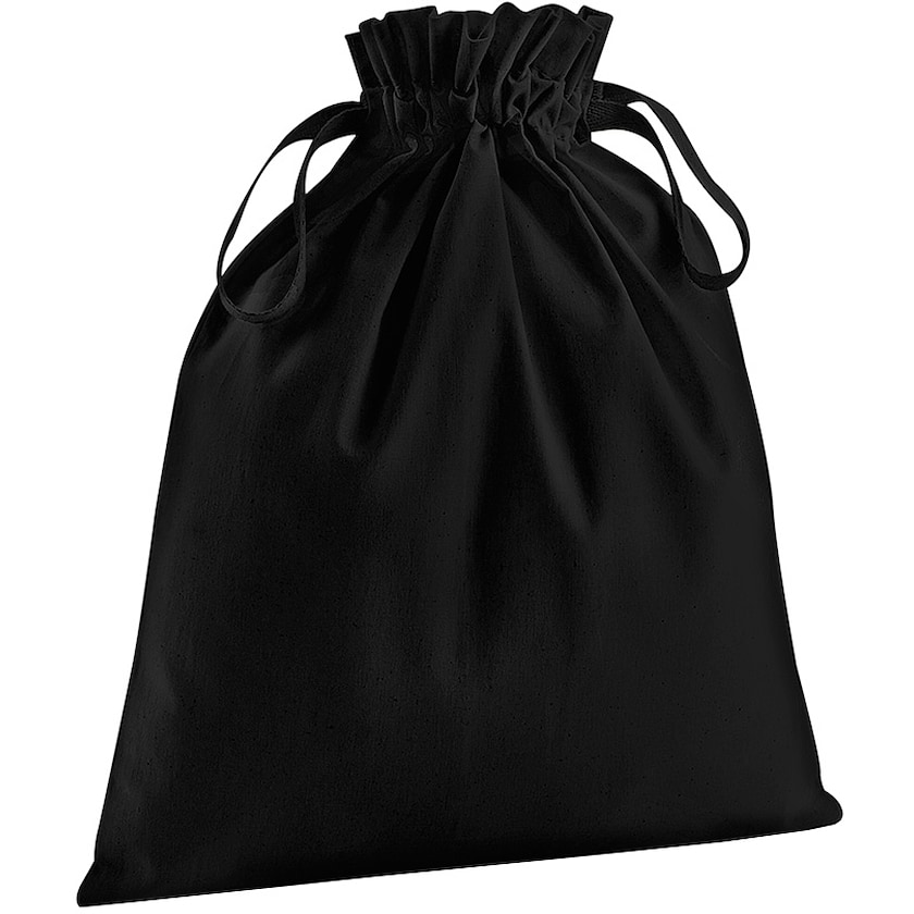 Luomupuuvillainen pussi, jonka tilavuus on n. 3 litraa. Suuaukon voi kiristää narujen avulla.