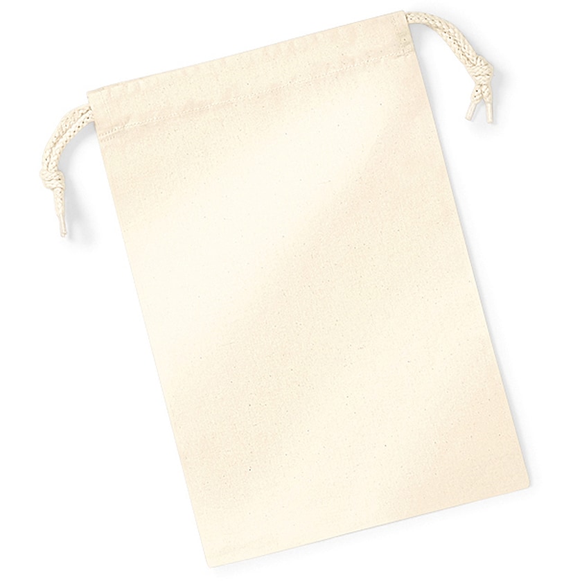 Pieni luomupuuvillainen pussi kiristysnaruilla. Pussin tilavuus on n. 1 litra.