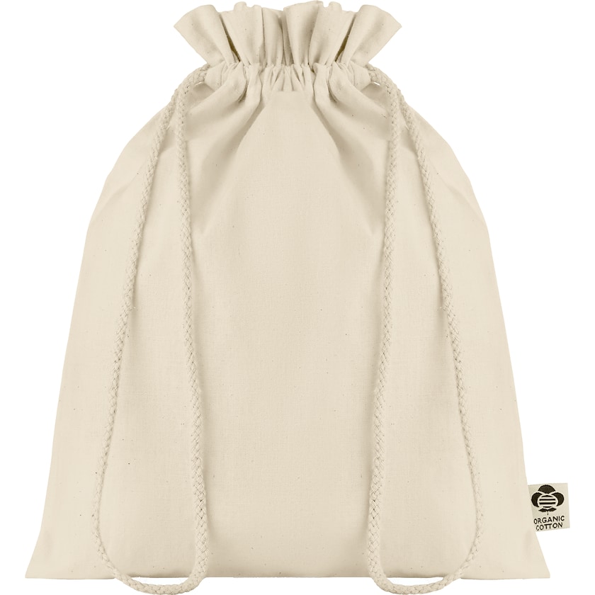 Keskikokoinen pussi luomupuuvillasta. Materiaalina 100% luomupuuvilla. Kaunis ja luonnollinen lahjapussi!