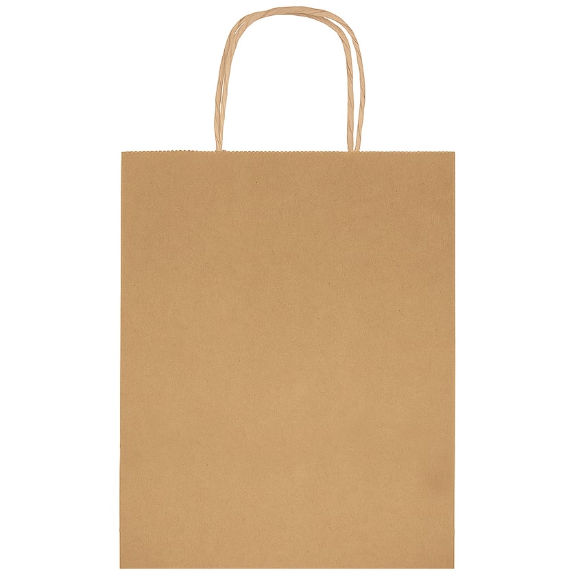 Pieni luonnonvärinen paperikassi kierrätetystä paperista. Kahvat on vahvistettu. Kassi kestää enintään 4 kg painon. Digipainatuksen ansiosta toimitusaika on lyhyt.