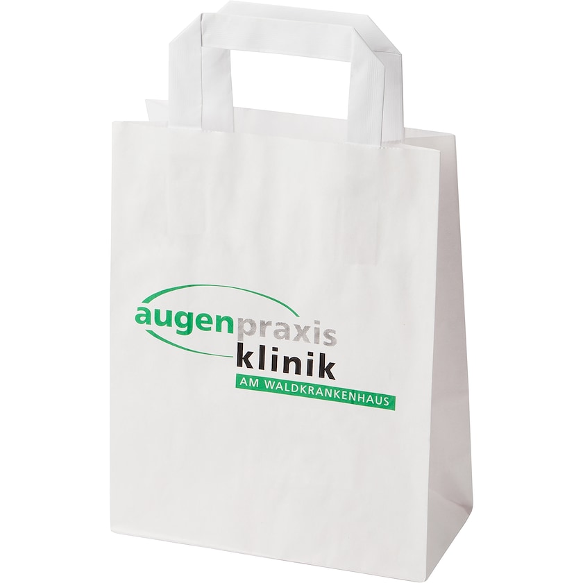 Pieni paperikassi lyhyillä kahvoilla. Valmistettu sileästä paperista. Painohinta sisältää yksipuolisen painatuksen.