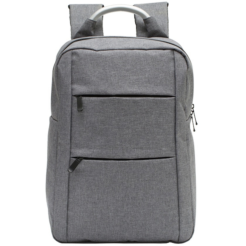 Yksinkertaisen tyylikäs reppu alumiinikahvalla. Repussa on iso päätasku ja edessä kaksi vetoketjullista pientä taskua. Pehmustetut olkaimet.